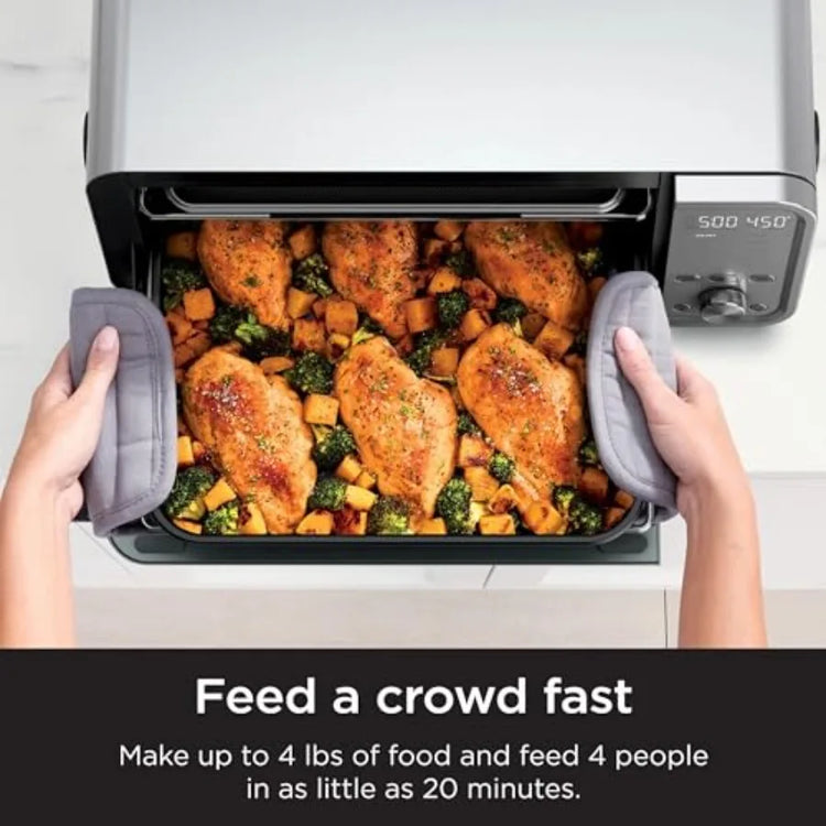 Save counter space with this flip up Air Fry Oven. Make a complete meal in as little as 20 minutes.