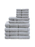 • 10-piece set includes 4 bath towels, 2 hand towels, and 4 washcloths.