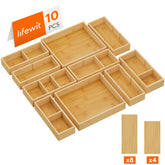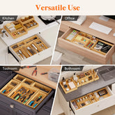 Drawer Organizers, Adjustable Bamboo Wooden Drawer Dividers, Stackable Storage Box